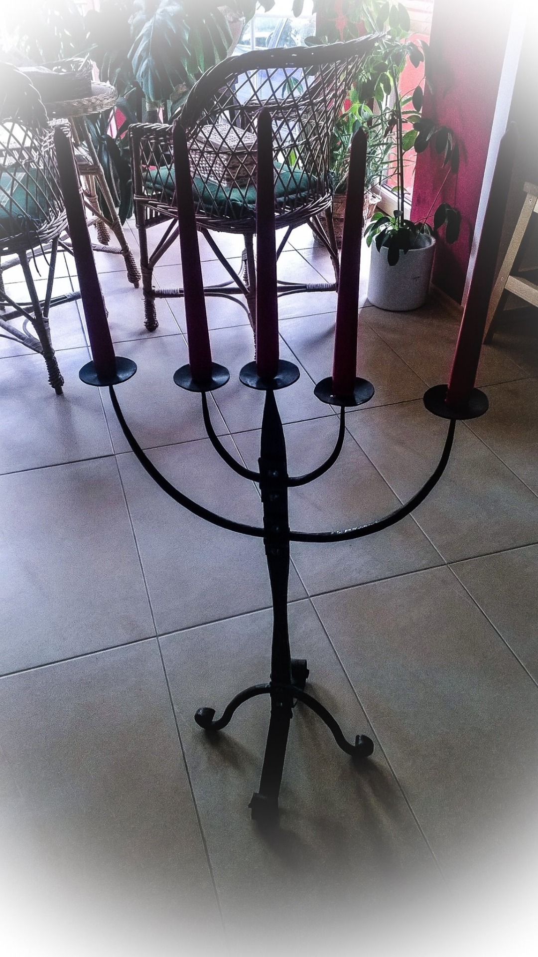 Kovaný svícen pětiramenný